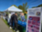 Two event participants talking to a woman at the Possibilities Project Plus booth.